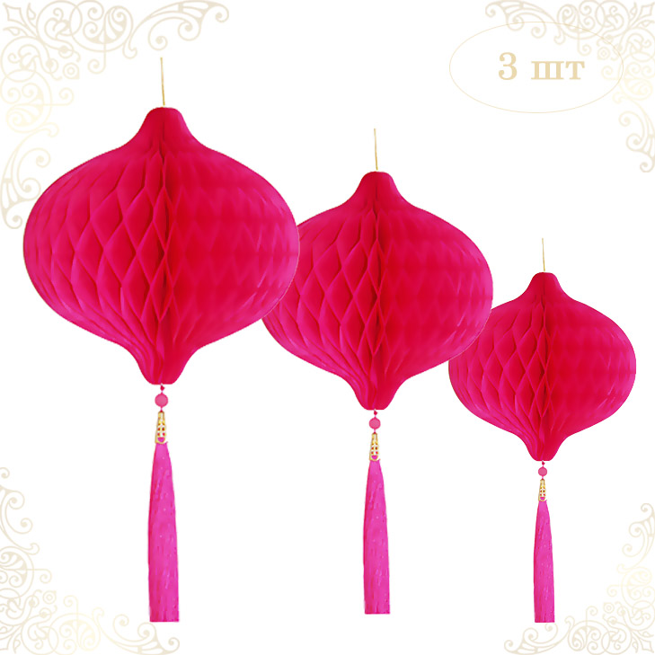НАБОР бумажное украшение Шары-соты с кисточкой, малиновый - 3шт: