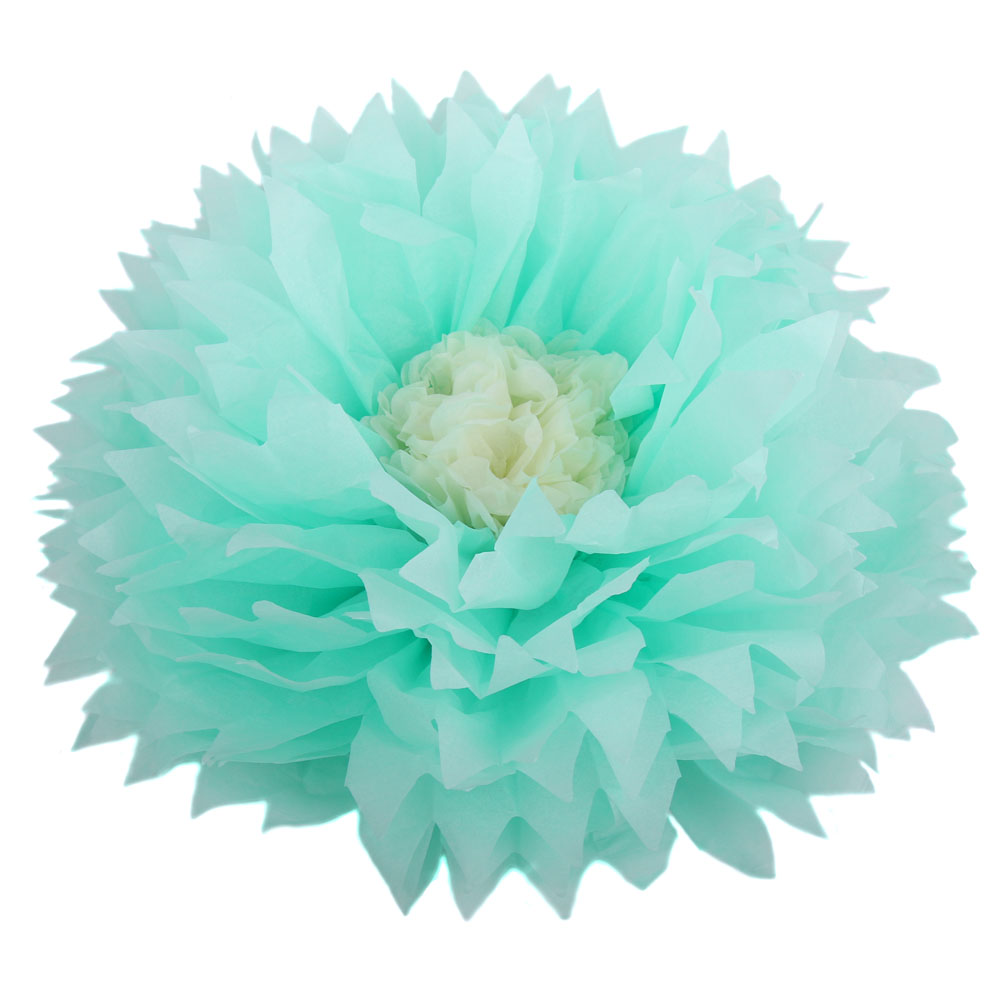 Бумажный цветок 30 см мятный+айвори