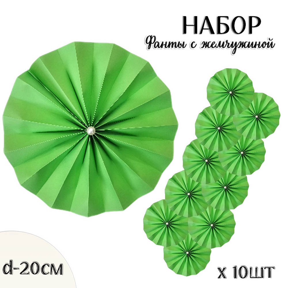 Фанты с жемчужиной НАБОР 10шт х 20см, св.зеленый