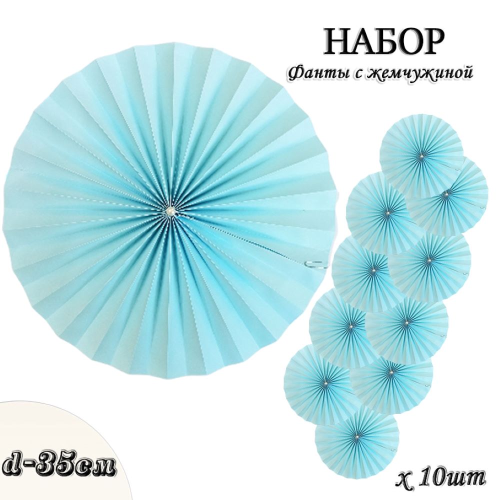 Фанты с жемчужиной НАБОР 10шт х 35см, голубой