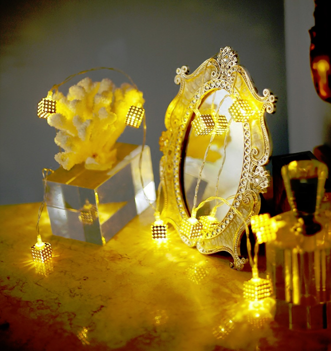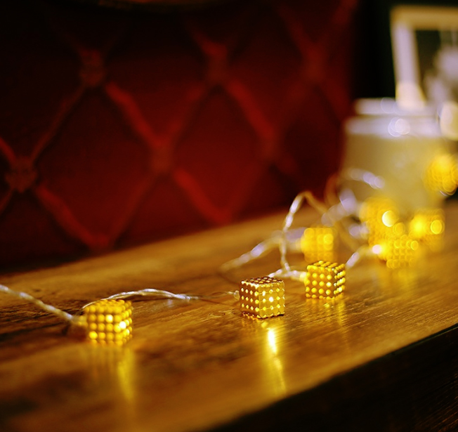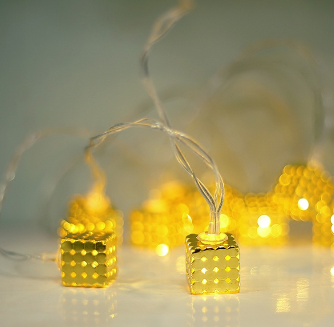 Гирлянда Кубики золотые 2 м 20 ламп от батареек