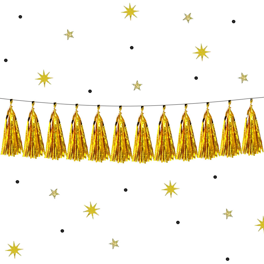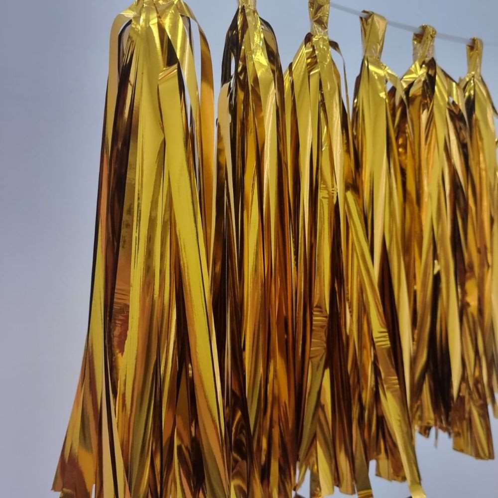 Гирлянда тассел 12 кисточек по 10 листов, фольга золото