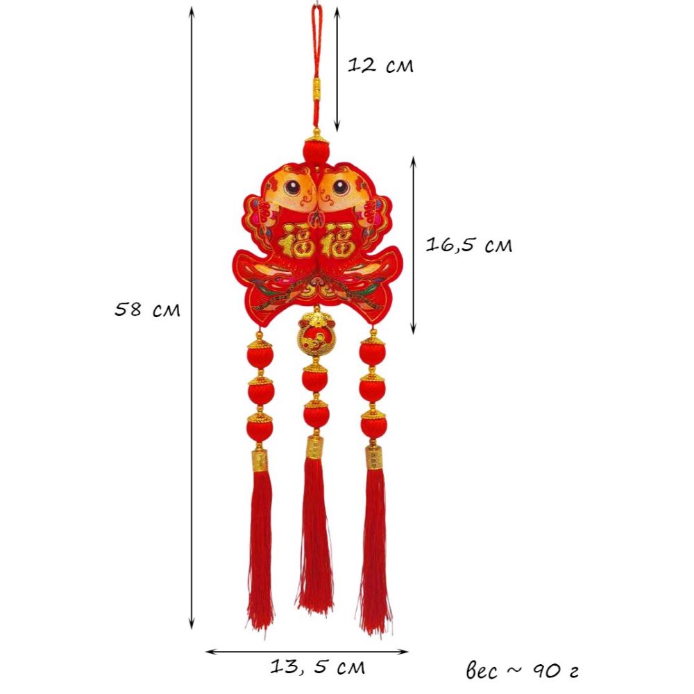 Китайская подвеска 13,5х58см, Две Рыбки - 1 шт