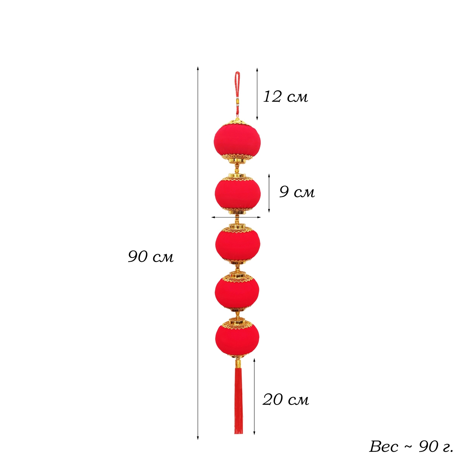 Китайская подвеска 9х95см, Фонарики