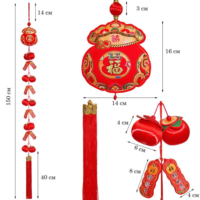 Китайская подвеска Яблоки 16х150см, Денежный мешок