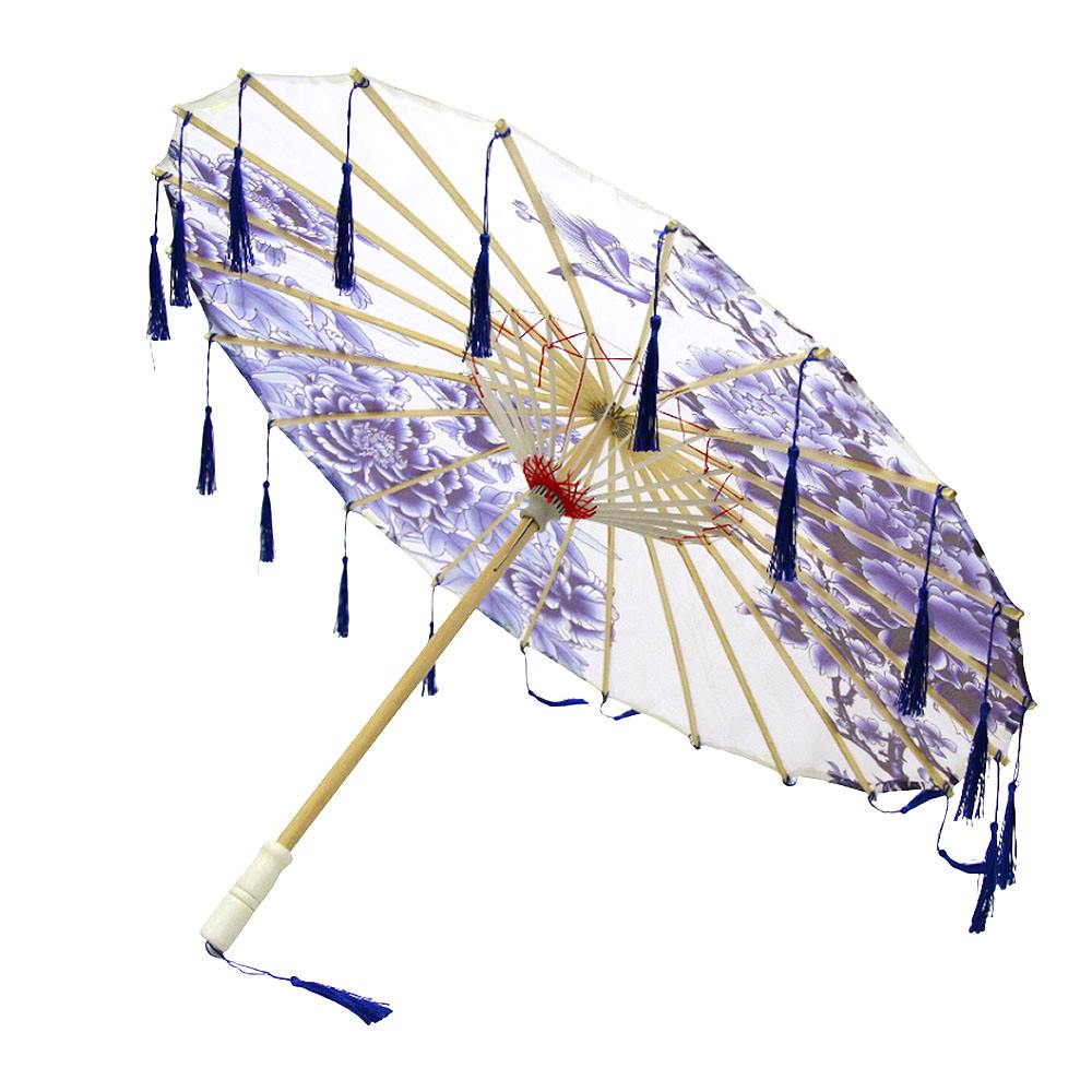 Китайский тканевый зонтик цветочный с кисточками 82х54см, №3