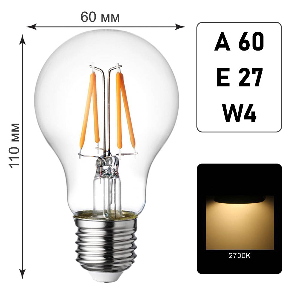 Лампа филаментная A60 E27 W4 K2700