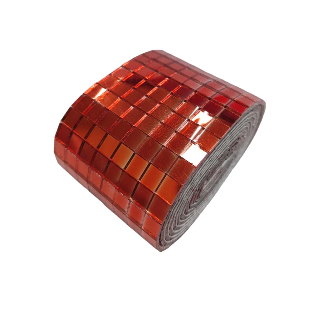 Лента самоклеящаяся зеркальная мозаика стекло, 4см х 1м 5х5мм, красный