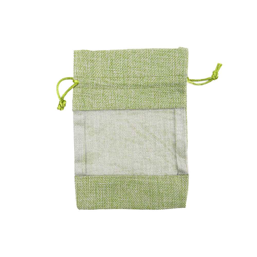 Мешочек из мешковины и органзы 13х18 см салатовый