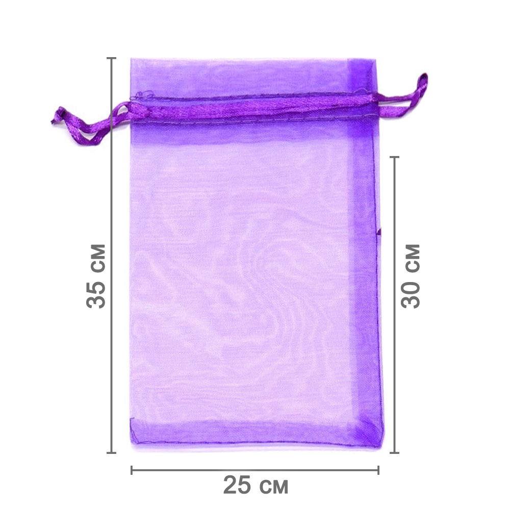 Мешочек из органзы 25 х 35 см — практичный аксессуар для упаковки крупных предметов и подарков. Лёгкая ткань подчёркивает содержимое и придаёт праздничный вид.