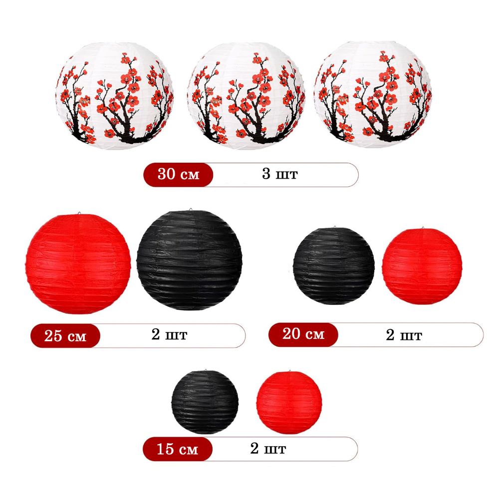 Набор подвесные фонарики 9 шт, сакура
