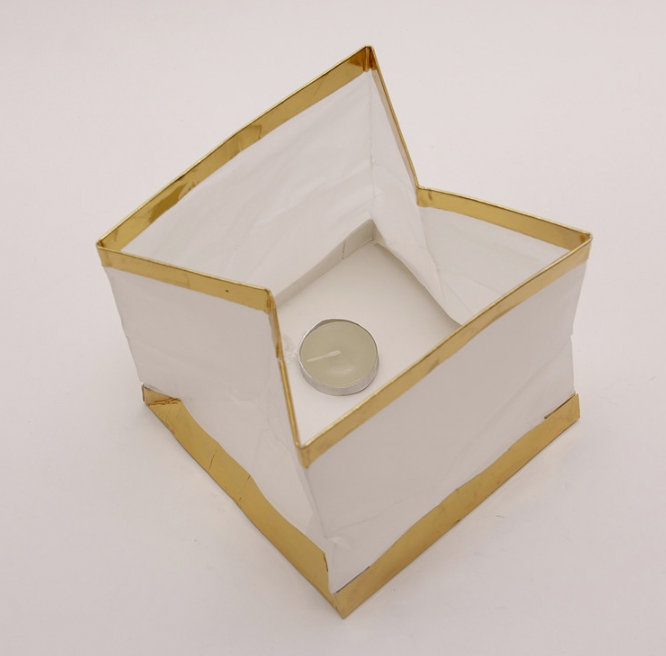 Плавающий фонарик "Куб" 11х11 см золото+белый