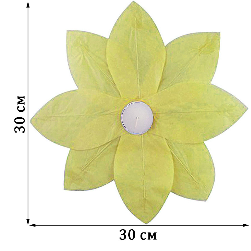 Плавающий фонарик Лотос 30х30 см — красивый декоративный элемент для создания свечных композиций. Центральное отверстие позволяет удобно установить чайную свечу, создавая мягкое и уютное освещение.