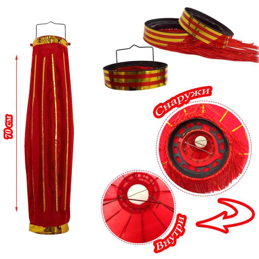 Фонарь изготовлен из нетканой флокированной ткани, ткань долговечная, не выгорает на солнце, водонепроницаемая. Внутренний каркас выполнен из стали.