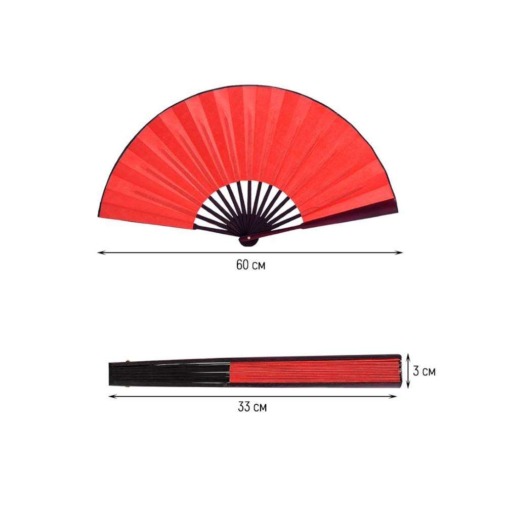 Веер 33х60см, красный-красный