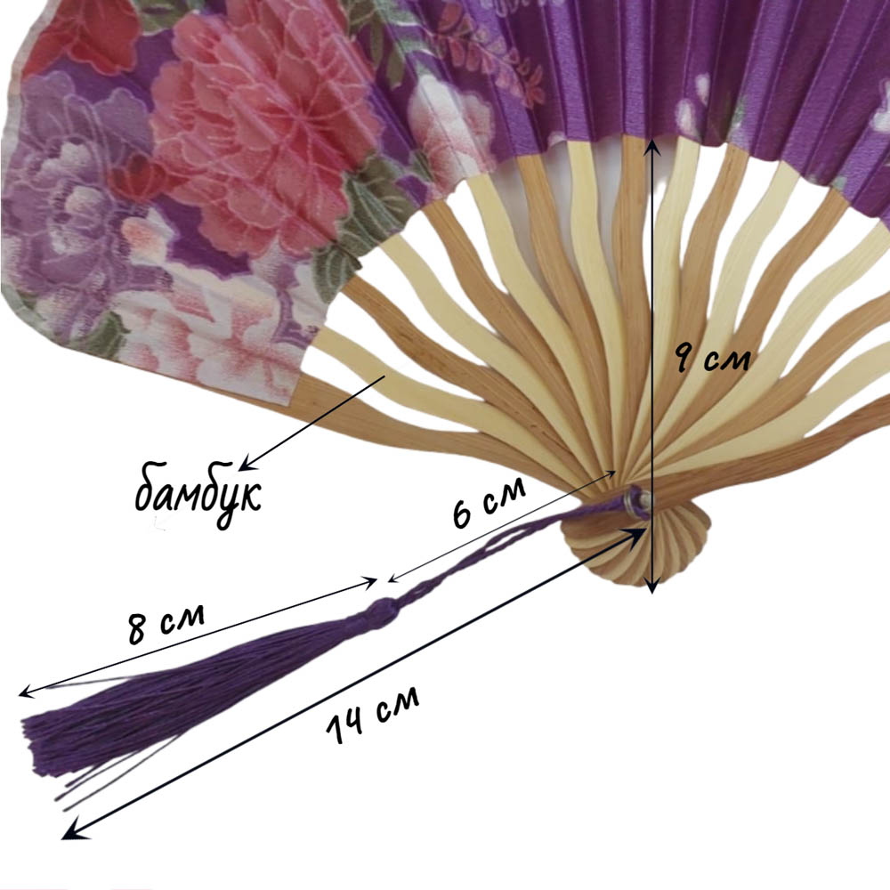 Веер круглый с цветочным узором 29х15 см, №12