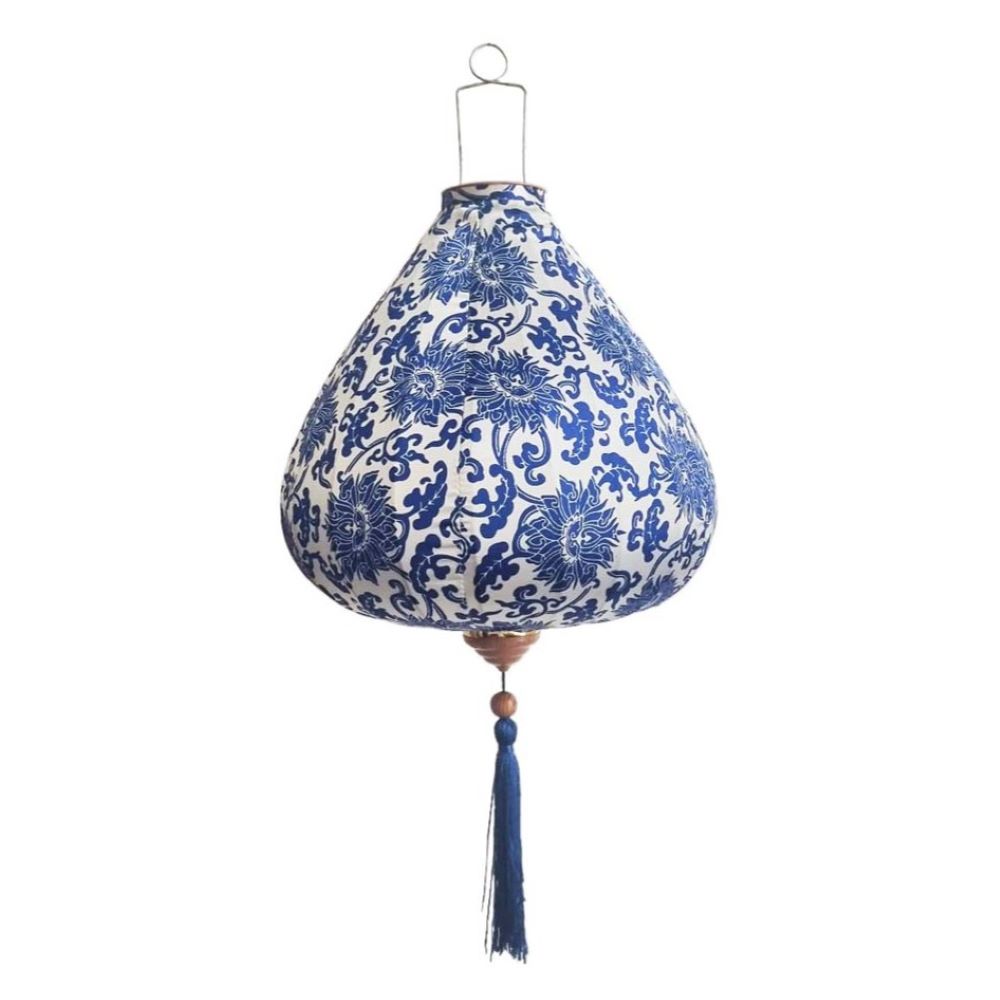 Вьетнамский фонарик 16" Тыква бело-синий 755
