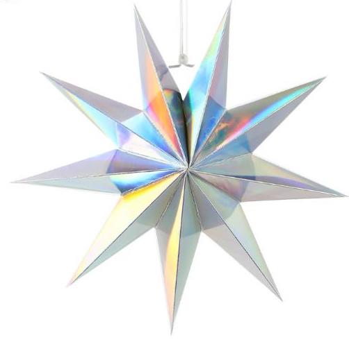 Объёмная девятиконечная звезда 60 см — декоративный элемент для интерьера и праздничного оформления. Лёгкая интерьерная звезда из картона хорошо держит форму и создаёт выразительный объём. Поставляется в сложенном виде, в комплекте шнур для фиксации объёма и подвеса.