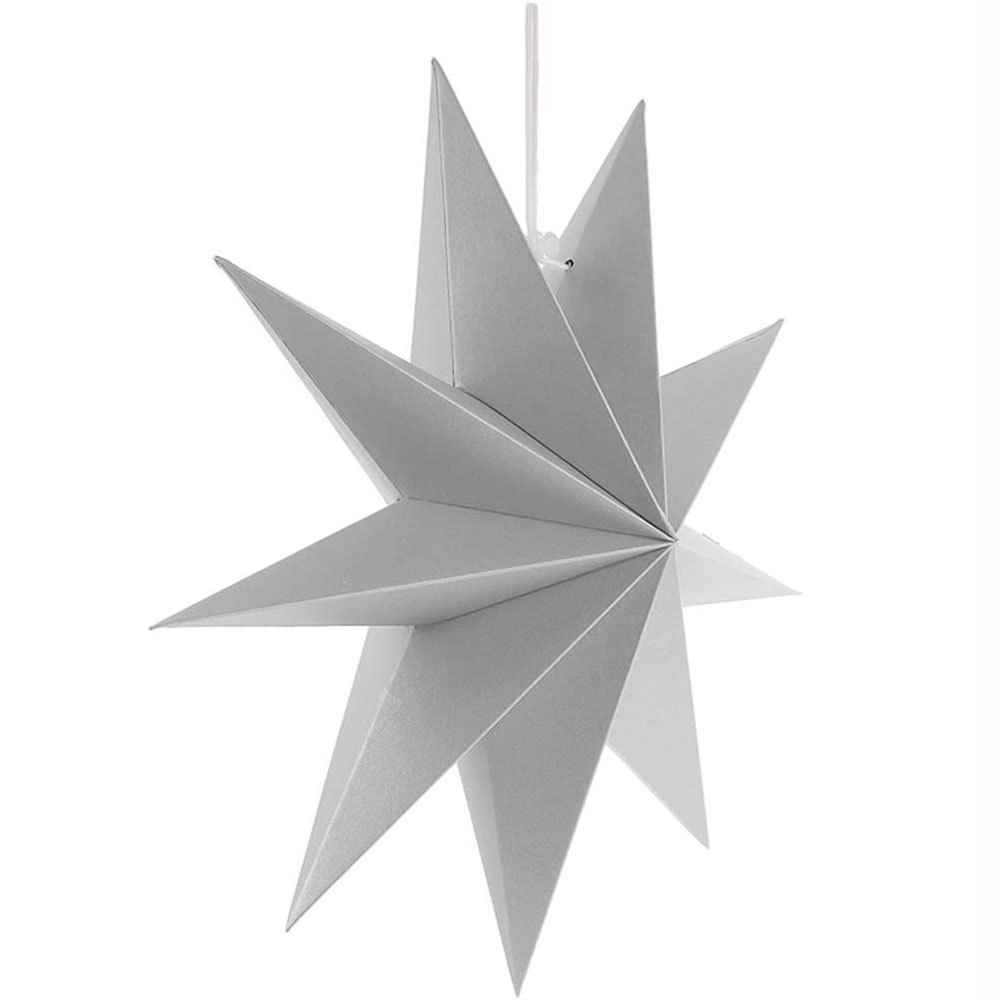Объёмная девятиконечная звезда 60 см — декоративный элемент для интерьера и праздничного оформления. Лёгкая интерьерная звезда из картона хорошо держит форму и создаёт выразительный объём. Поставляется в сложенном виде, в комплекте шнур для фиксации объёма и подвеса.