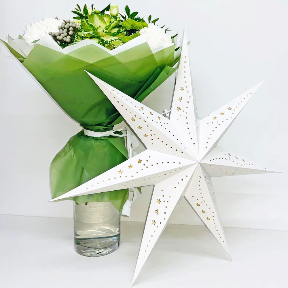 Элегантная подвесная звезда из плотной бумаги с ажурным орнаментом в виде звёзд и кружочков. Белый цвет и аккуратная перфорация создают мягкий световой рисунок, добавляя интерьеру ощущение тепла и уюта.