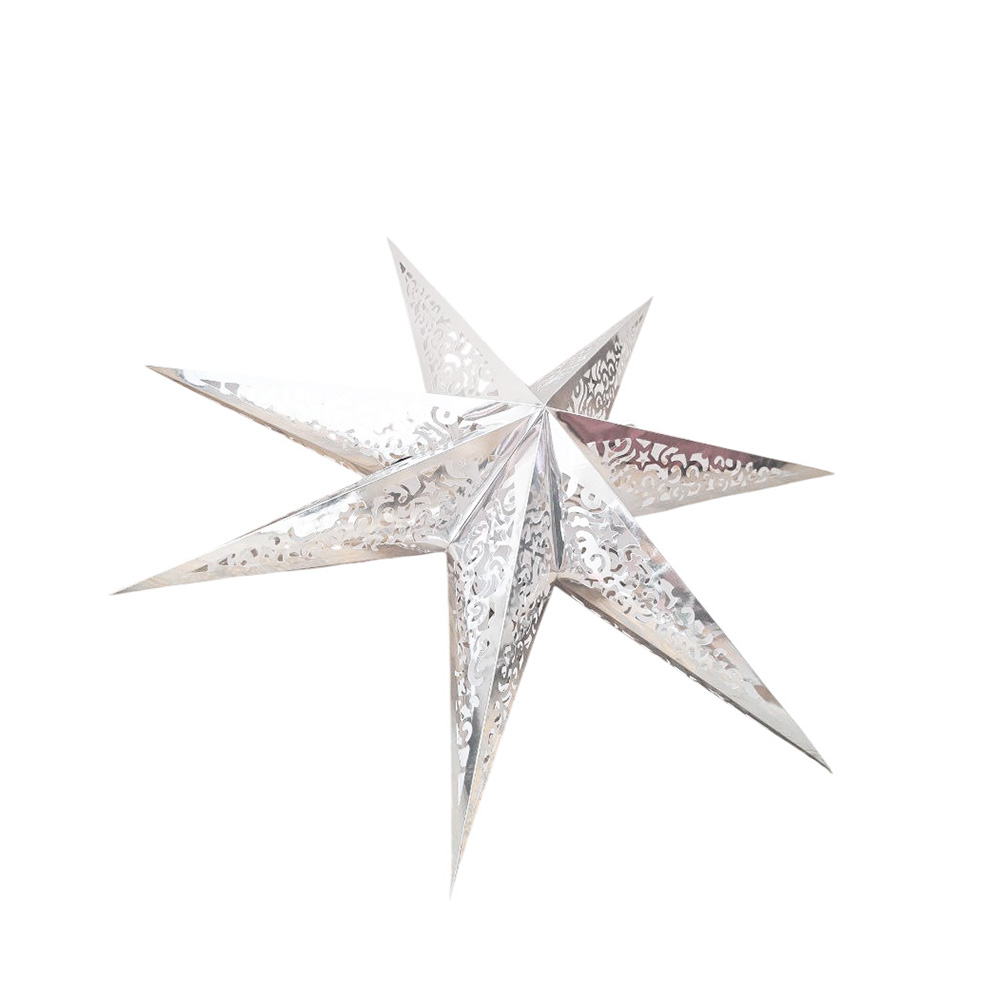 Семиконечная объемная звезда 75 см — великолепный декор из тонкого перфорированного картона. Создает красивые световые эффекты. Поставляется в сложенном виде, в комплекте шнур для фиксации объема и подвеса.
